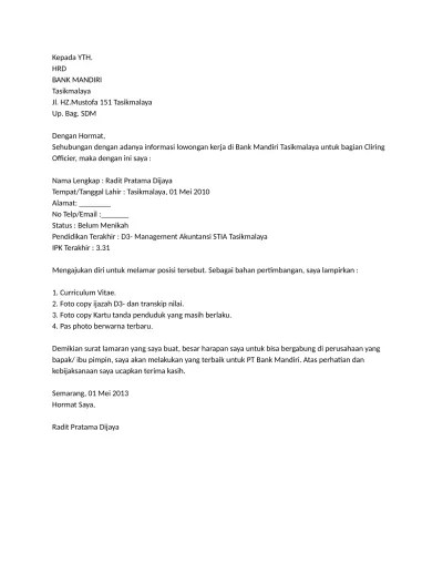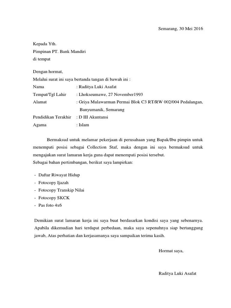 Contoh Surat Lamaran Kerja Di Bank Mandiri / 43 Contoh Surat Lamaran Kerja Terbaru Menarik Baik Dan Benar / Contoh curriculum vitae, contoh surat lamaran kerja ke bank mandiri, contoh .